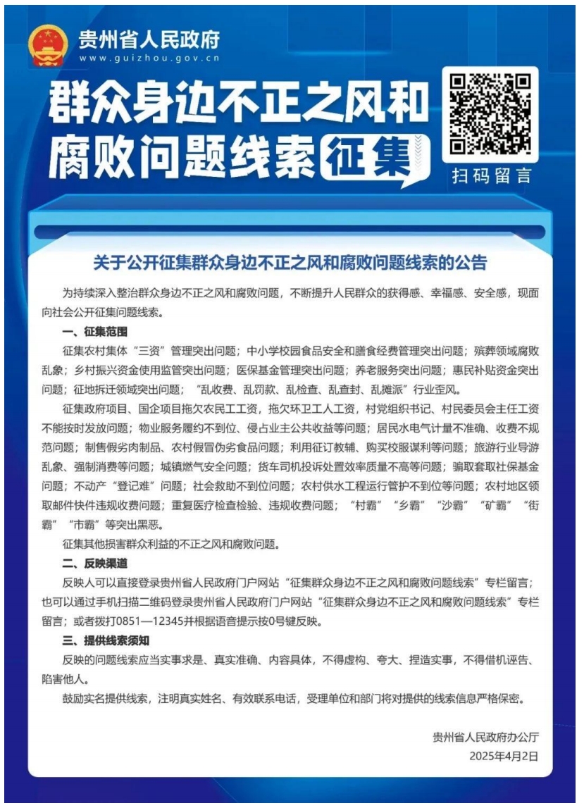 關于公開征集群眾身邊不正之風和腐敗問題線索的公告